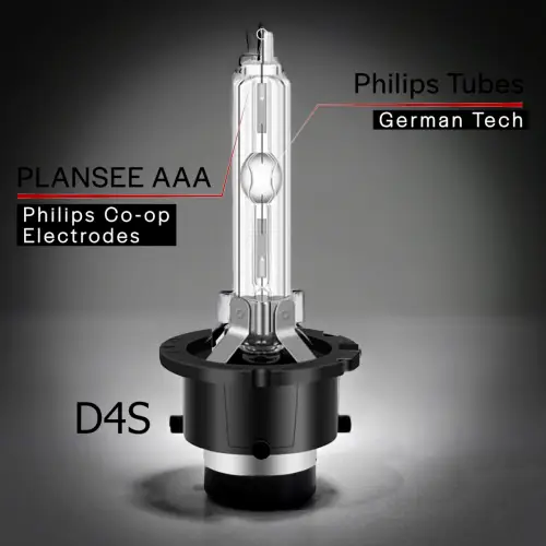 D4S HID globes are designed exclusively for projector-based factory xenon headlights. They rely on the projector lens and internal cutoff shield to control light distribution, rather than a coated burner.